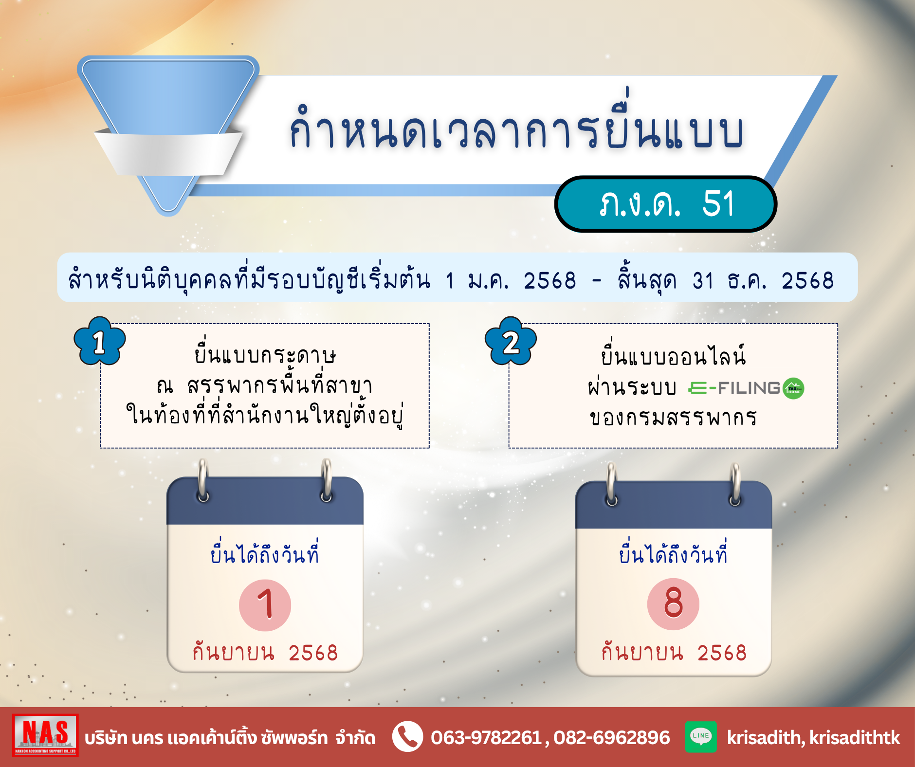 กำหนดการยื่นแบบ ภ.ง.ด. 51 ประจำปี 2568