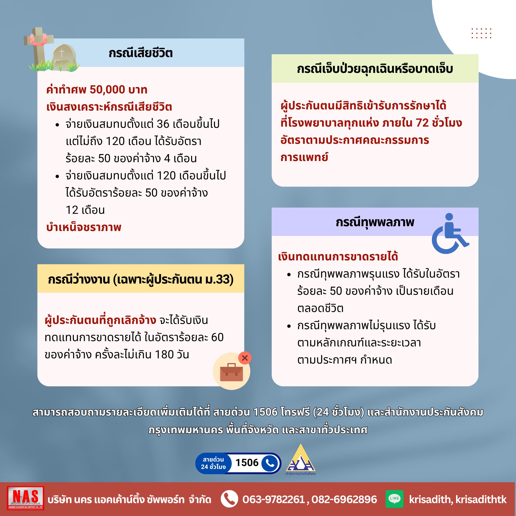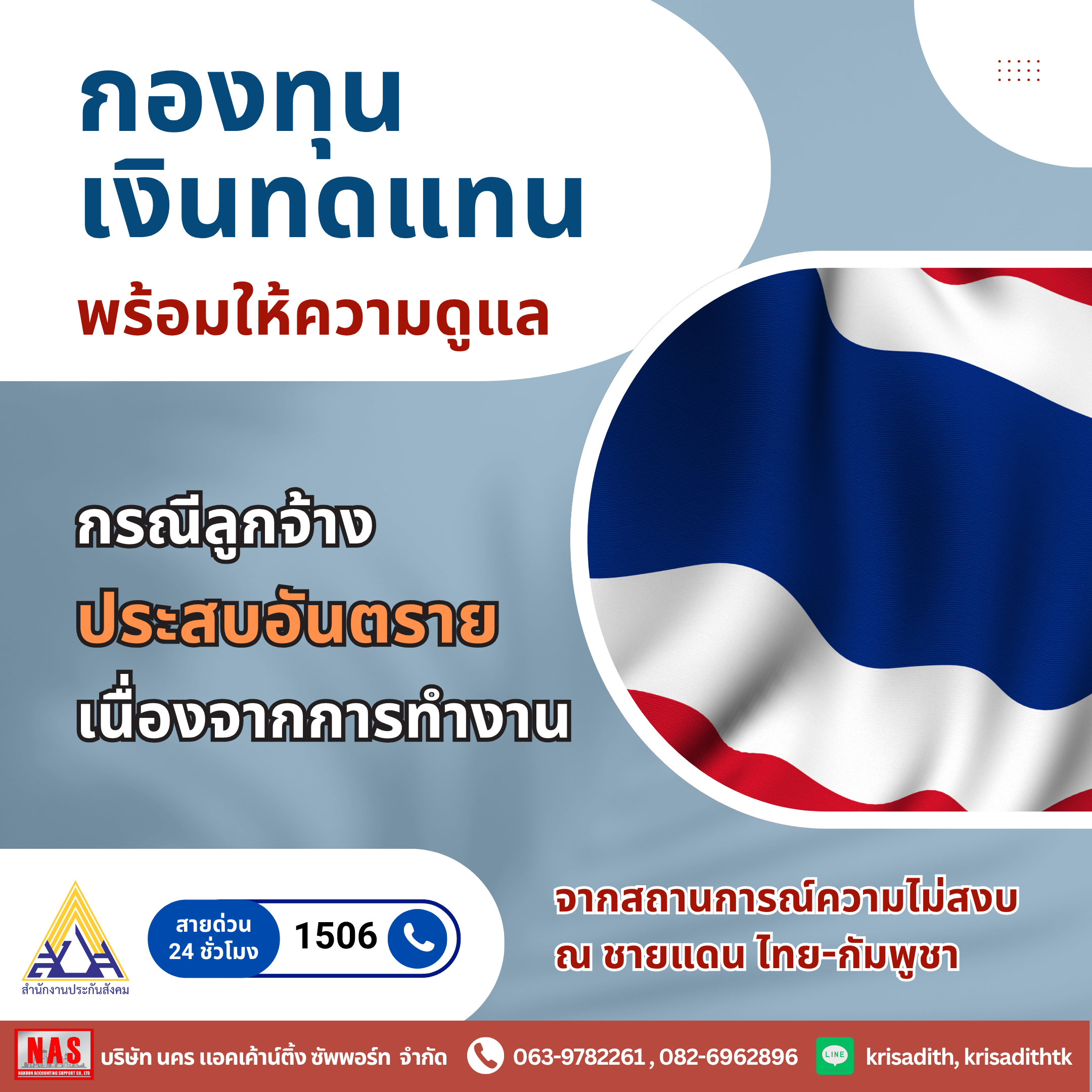 สำนักงานประกันสังคมแสดงความห่วงใยต่อพี่น้องประชาชน ที่กำลังประสบอันตรายหรือได้รับผลกระทบจากเหตุการณ์ความไม่สงบในเขตพื้นที่ชายแดนไทย-กัมพูชา หากลูกจ้างท่านใดได้รับผลกระทบหรืออยากสอบถามเพิ่มเติมเกี่ยวกับเรื่องสิทธิประโยชน์ของผู้ประกันตน สามารถติดต่อสำนักงานประกันสังคมในพื้นที่ หรือโทรสายด่วนประกันสังคม 1506 ได้ตลอด 24 ชั่วโมง