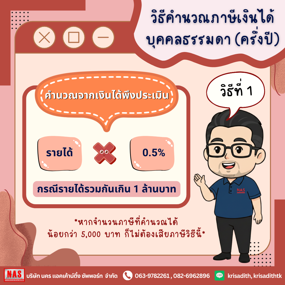 *หากจำนวนภาษีที่คำนวณได้จากวิธีนี้น้อยกว่า 5,000 บาท ก็ไม่ต้องเสียภาษีด้วยวิธีนี้*