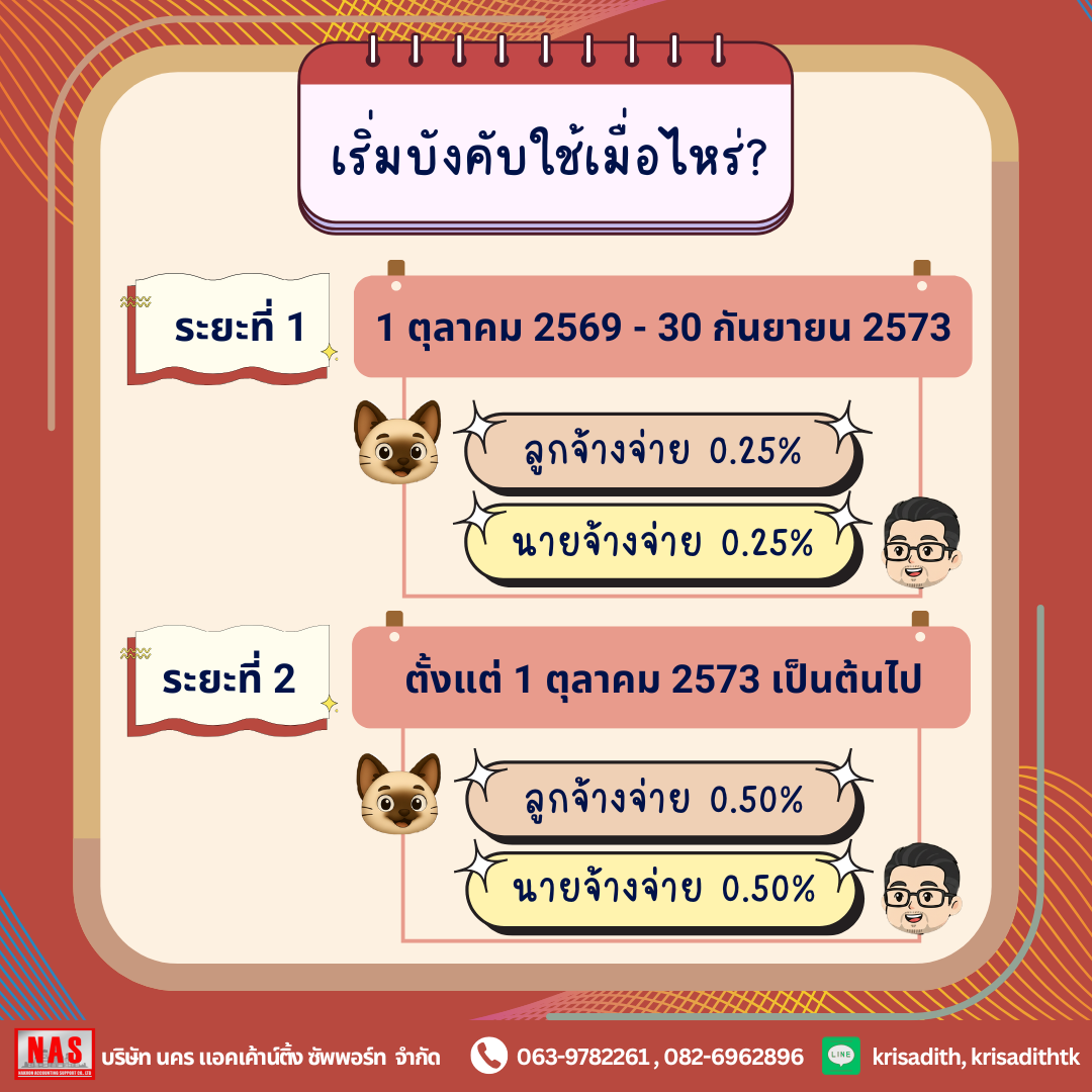 *ทั้งนี้ระยะเวลาของการเริ่มบังคับใช้กองทุนสงเคราะห์ลูกจ้างอาจมีการเปลี่ยนแปลงได้ขึ้นอยู่กับการออกกฏระเบียบของกระทรวงแรงงาน