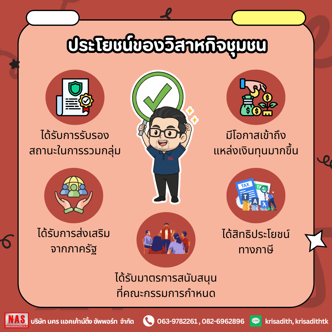 บางครั้งเป้าหมายในการทำธุรกิจของเราอาจไม่ใช่แค่การสร้างกำไร แต่เป็นการช่วยกระจายรายได้ให้คนในชุมชนได้อยู่กันอย่างเข้มแข็งและยั่งยืน ซึ่งการจดทะเบียนเป็นวิสาหกิจชุมชนรวมถึงการทำบัญชีและยื่นภาษีอย่างถูกต้องก็เป็นอีกทางเลือกหนึ่งสำหรับทุกท่านได้