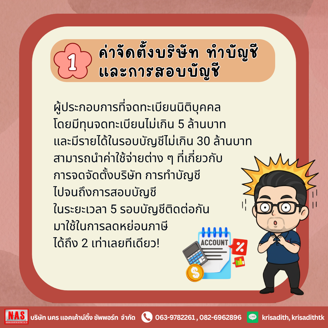 ความรู้เรื่องภาษีถือเป็นสิ่งสำคัญสำหรับผู้ประกอบการ เพราะนอกจากจะช่วยให้ธุรกิจดำเนินได้อย่างถูกต้องตามกฎหมายแล้ว ก็ยังสามารถช่วยลดจำนวนภาษีที่ต้องจ่ายในแต่ละครั้งได้อีกด้วย เพราะมีค่าใช้จ่ายอีกมากที่เราสามารถนำไปใช้ในการลดหย่อนภาษีได้ โดยนิติบุคคลจะมีค่าใช้จ่ายที่สามารถนำมาลดหย่อนได้ ดังนี้