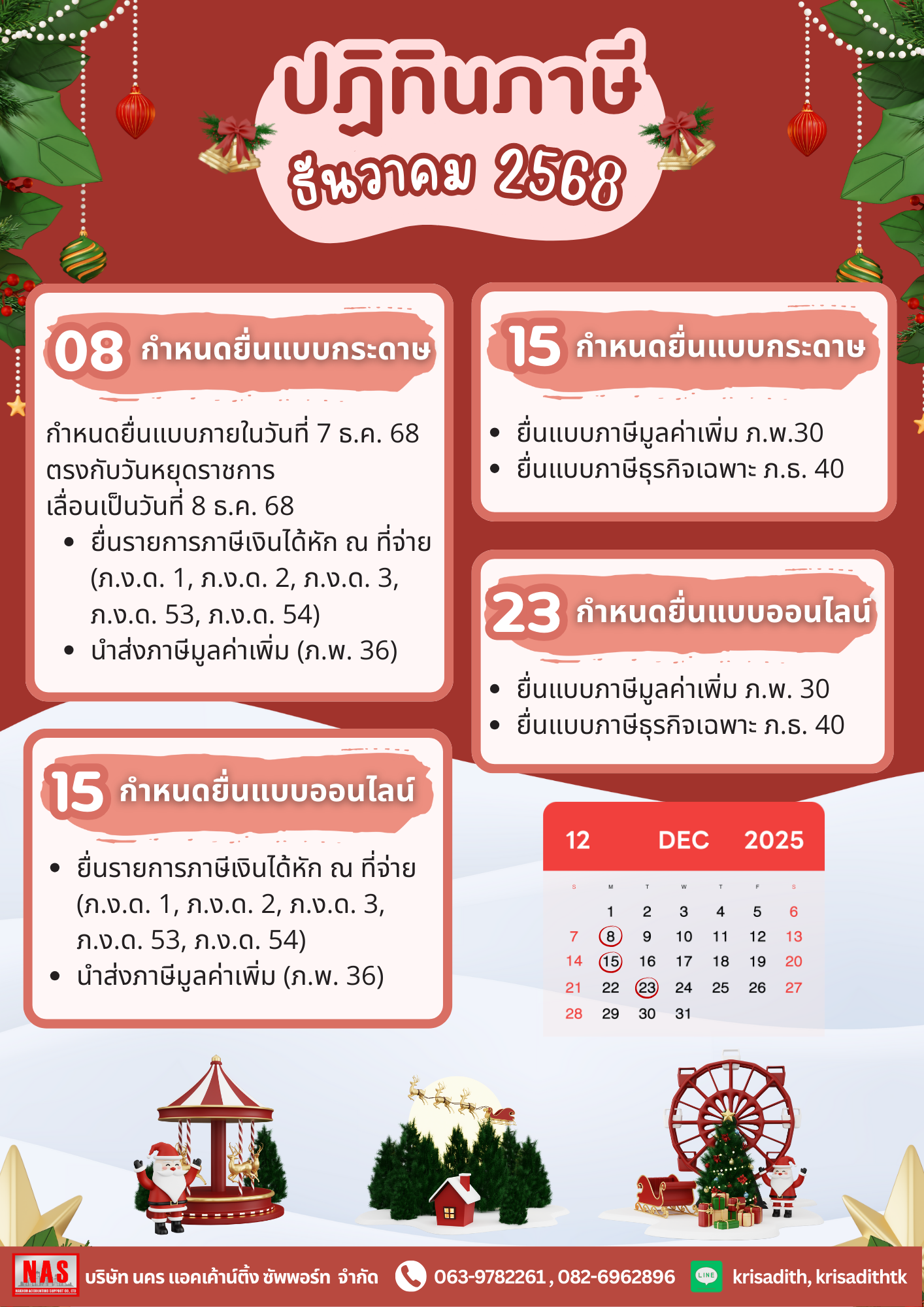 ปฏิทินภาษี ประจำเดือนธันวาคม 2568