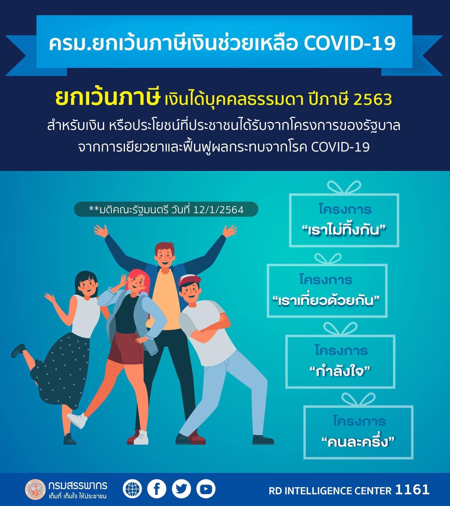 4 โครงการ ได้แก่ โครงการ “เราไม่ทิ้งกัน” “โครงการเราเที่ยวด้วยกัน” “โครงการคนละครึ่ง” และ“โครงการกำลังใจ”