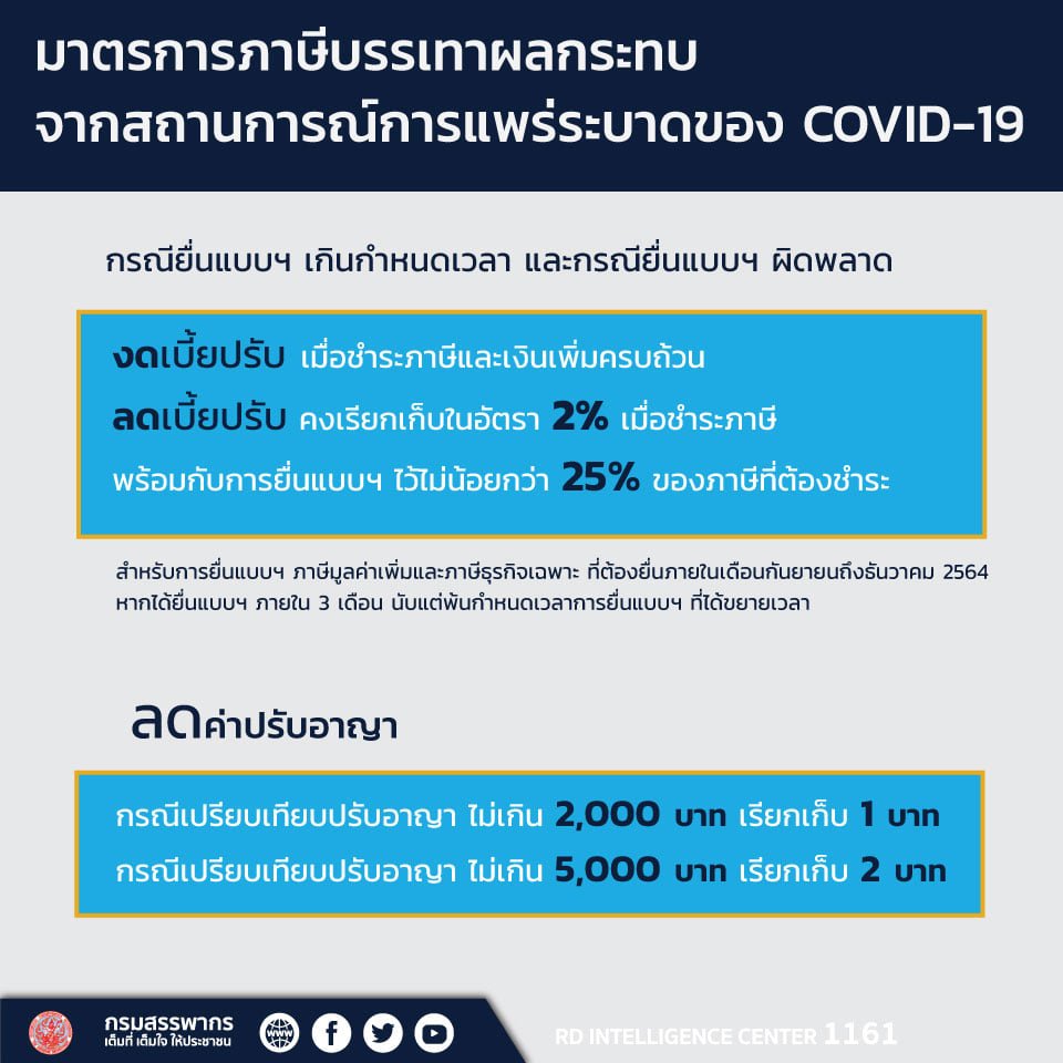 คลังขยายเวลาเก็บ VAT 7% ต่ออีก 2 ปี พร้อมขยายเวลายื่นแบบภาษี และงด/ลดเบี้ยปรับกรณียื่นแบบล่าช้า ช่วยบรรเทาผลกระทบจาก COVID-19