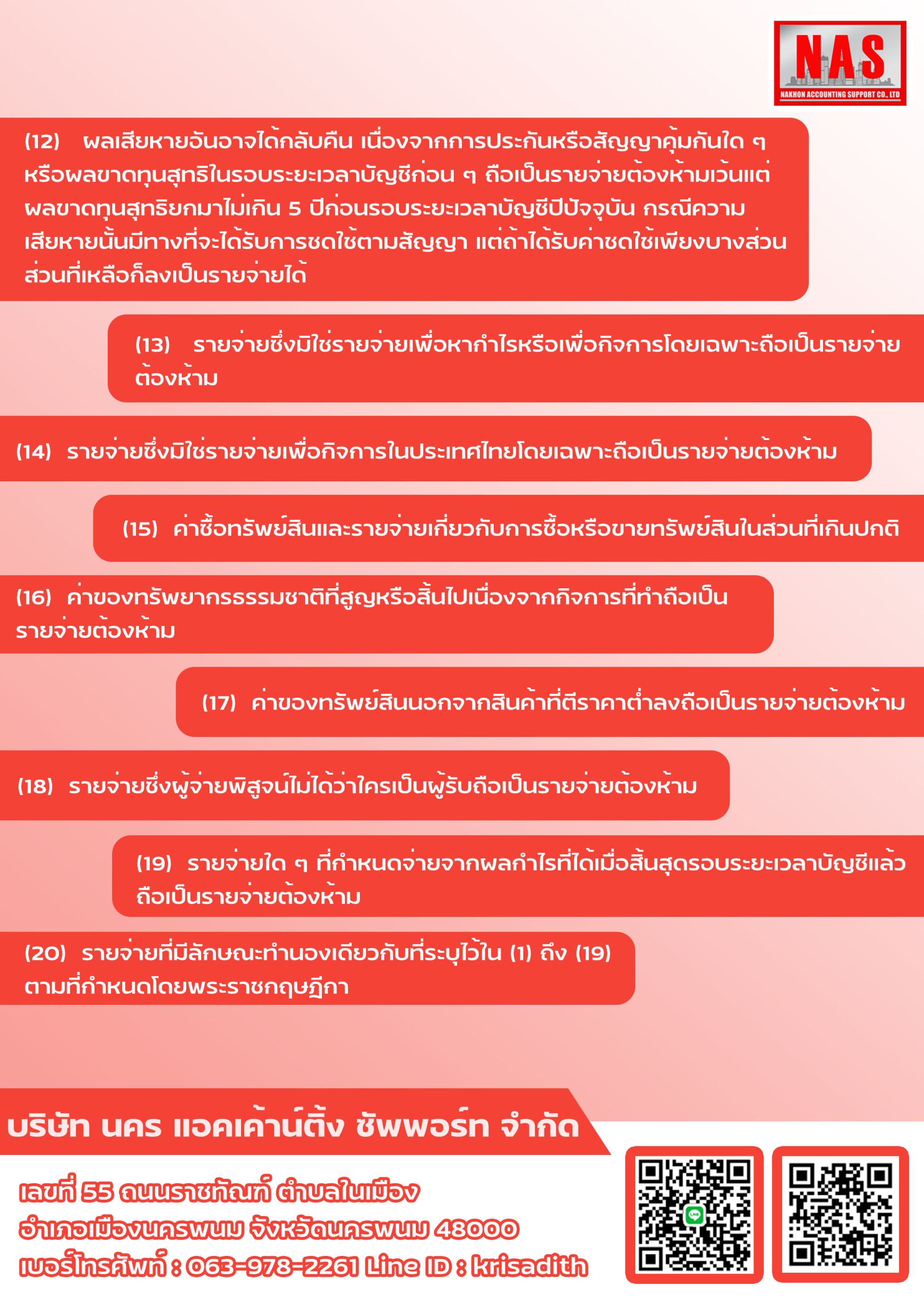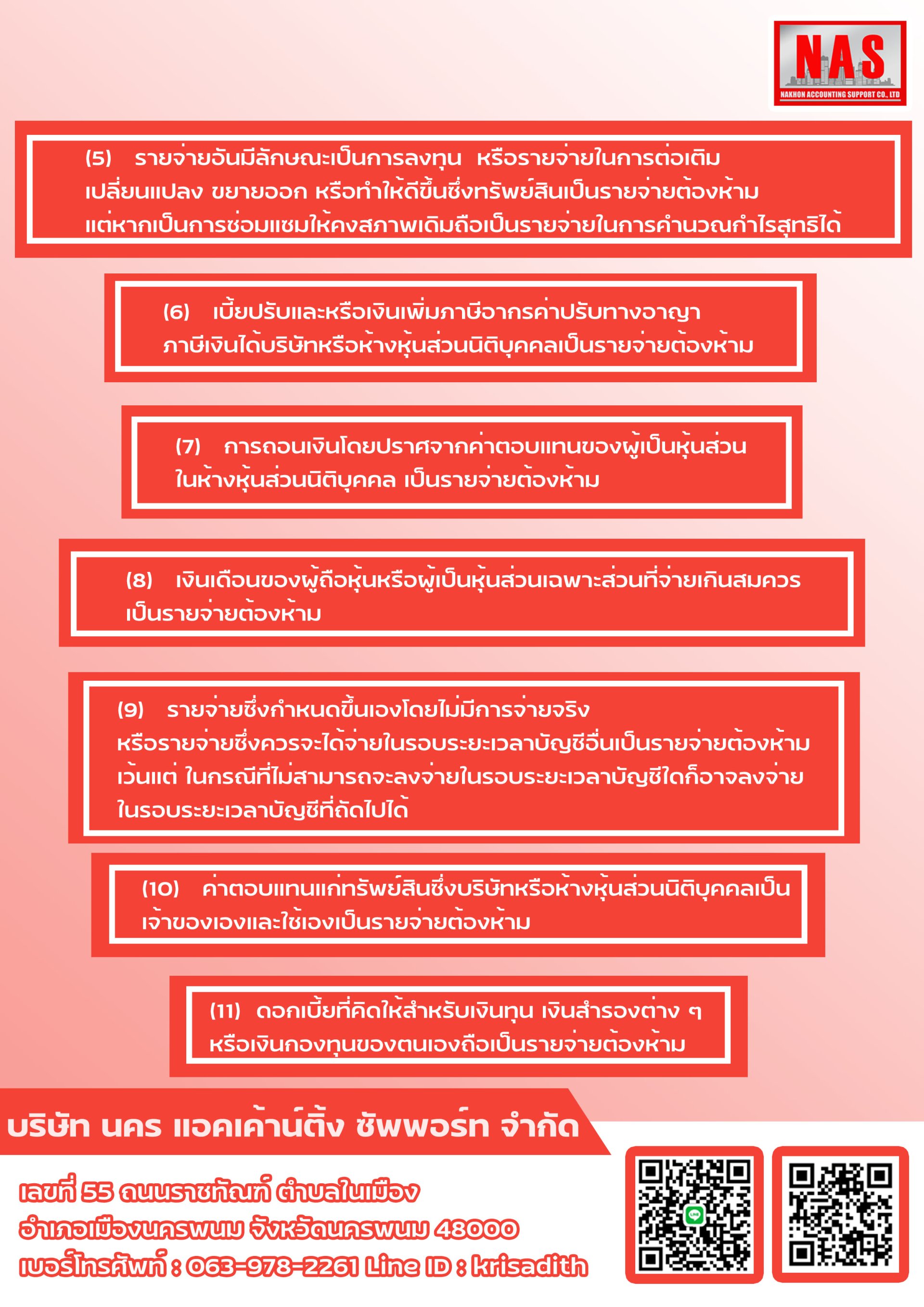 รายจ่ายต้องห้าม หมายถึง รายจ่ายที่เกิดขึ้นจากการดำเนินกิจการของนิติบุคคลและได้มีการบันทึกบัญชีเป็นรายจ่ายในรอบระยะเวลาบัญชีที่เกิดรายการ แต่ในทางภาษีไม่ให้ถือเป็นรายจ่ายในการคำนวณกำไรสุทธิ ขอบเขตรายจ่ายในการคำนวณกำไรสุทธิเพื่อเสียของบริษัทหรือห้างหุ้นส่วนนิติบุคคล กำหนดไว้ตามประมวลรัษฎากร